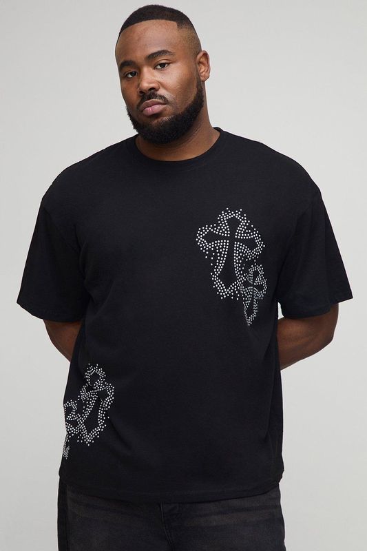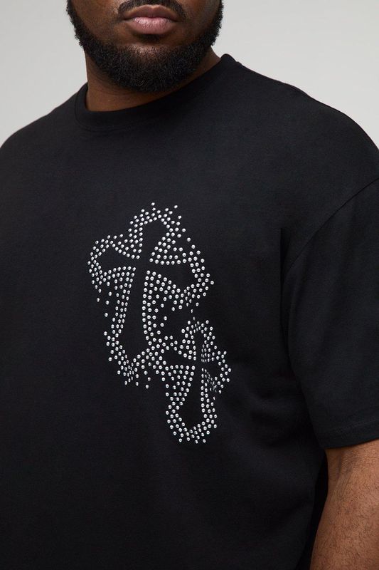 Plus Oversized Rhinestone Cross Embellished T-Shirt