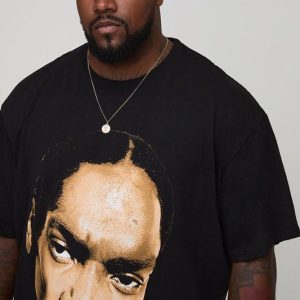 Black Oversized Extended Neck Slipknot License Printed T-Shirt
