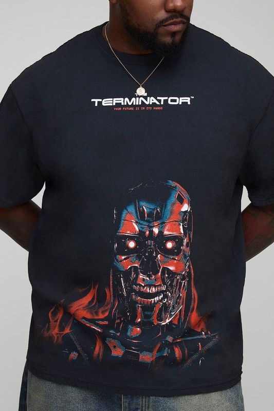 Plus Oversized Terminator License Print Washed T-Shirt