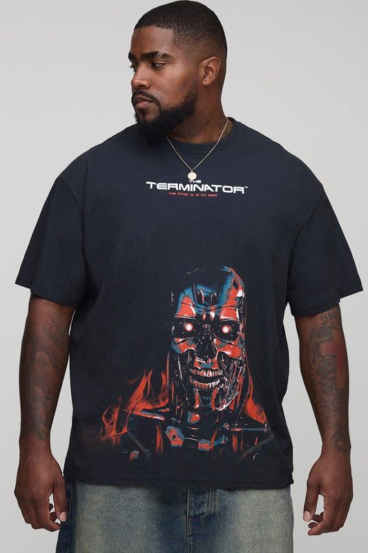 Plus Oversized Terminator License Print Washed T-Shirt
