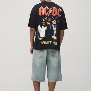 Black Oversized Extended Neck Slipknot License Printed T-Shirt