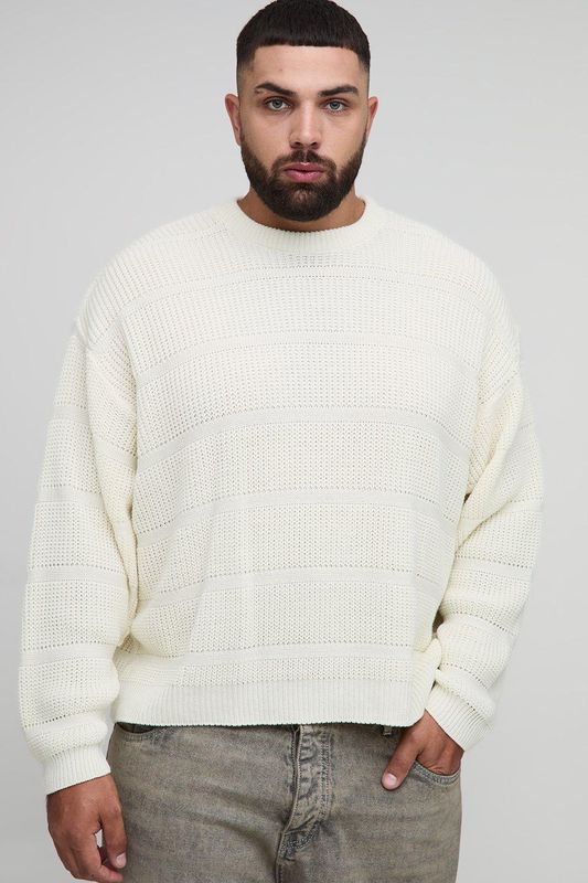 Plus Oversized Textured Knit Fisherman Jumper