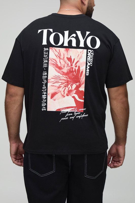 Plus Oversized Tokyo Blossom Print T-Shirt