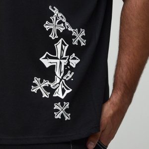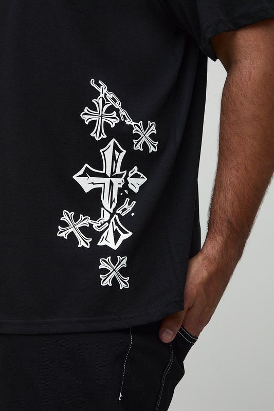 Plus Oversized Washed Cross Puff Print T-Shirt