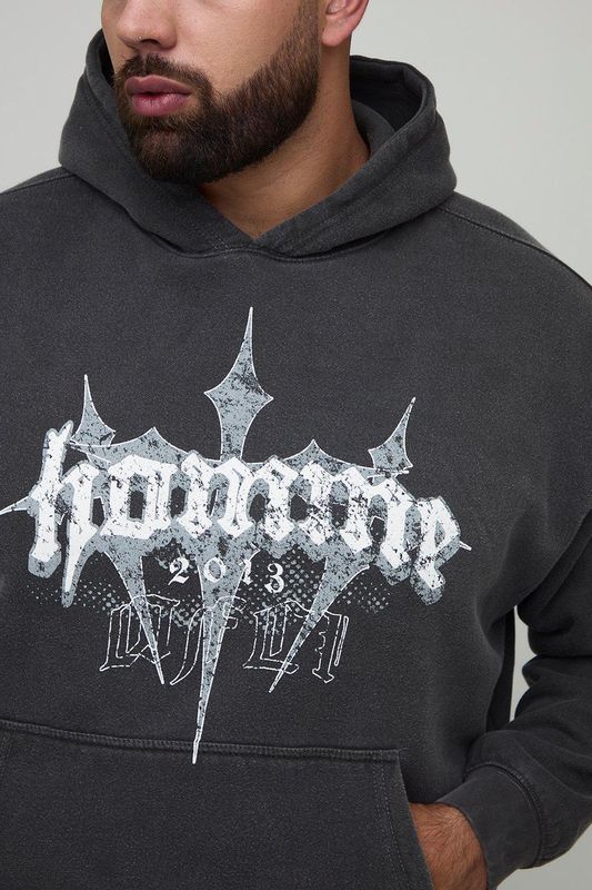 Plus Oversized Washed Homme Cross Print Hoodie