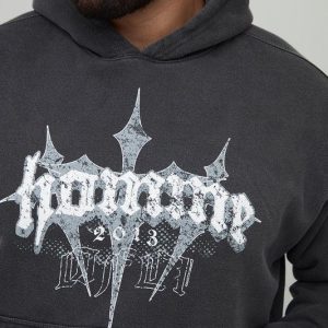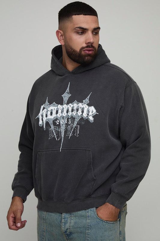 Plus Oversized Washed Homme Cross Print Hoodie