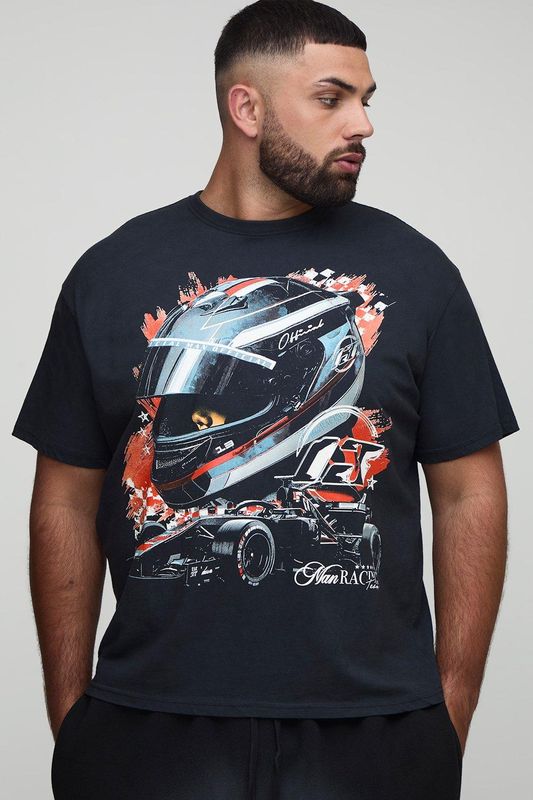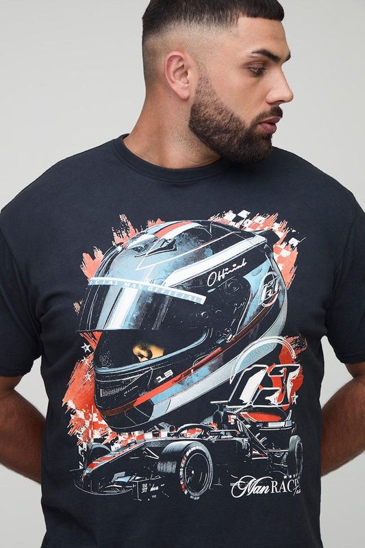 Plus Oversized Washed Official Racing Print T-Shirt