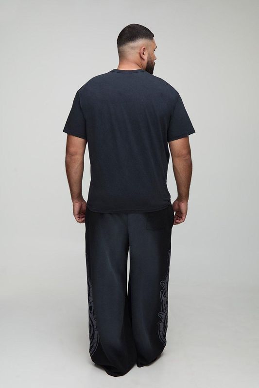 Plus Regular Man Embroidered T-Shirt & Oversized Tricot Extended Drawcord Jogger Set