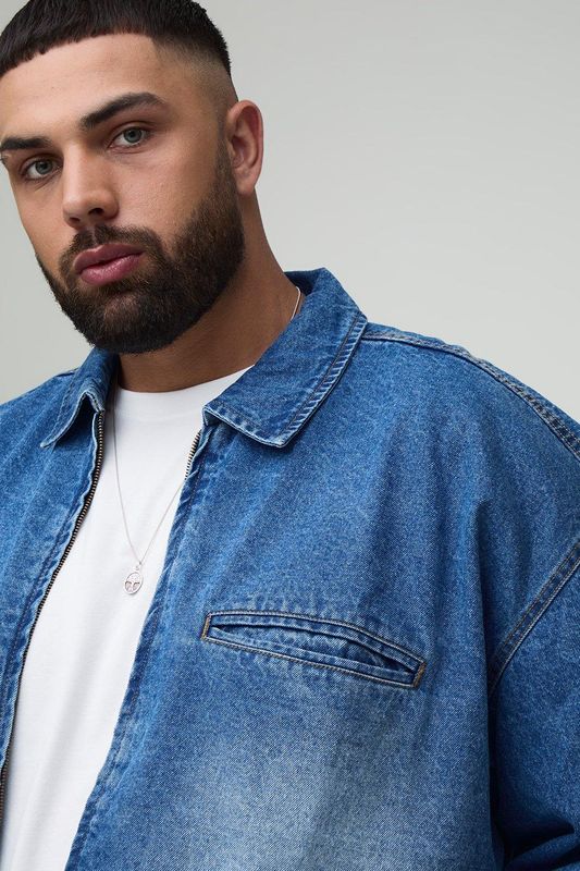 Plus Oversized Zip Up Denim Overshirt