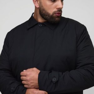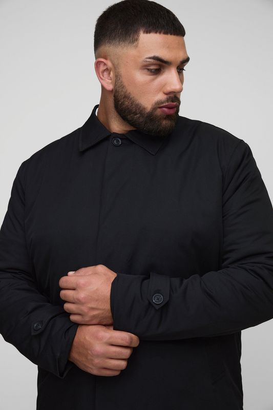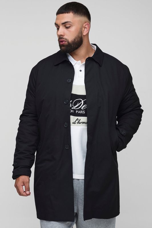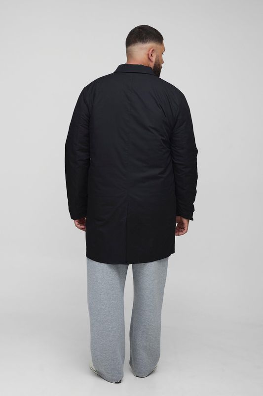 Plus Quilted Padded Longline Regular Fit Mac Jacket In Black