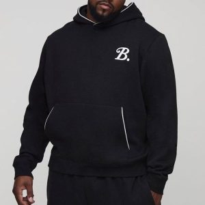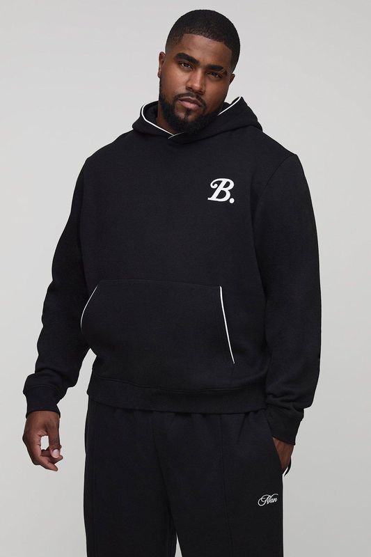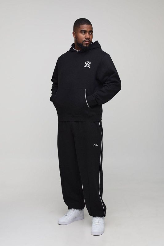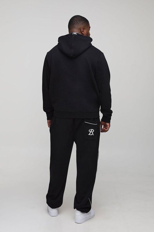 Plus Regular B Embroidered Piped Hoodie & Oversized Jogger Tracksuit
