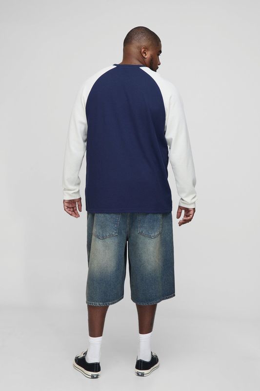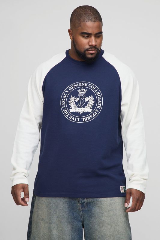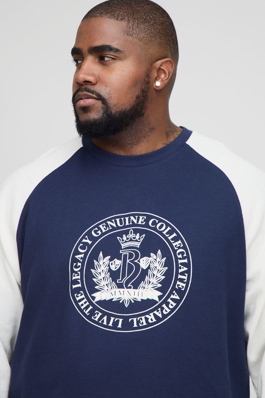 Plus Regular Fit Varsity Print Long Sleeve Waffle T-Shirt