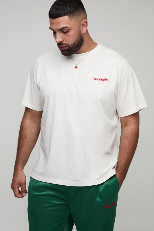 Plus Regular Man Embroidered T-Shirt & Oversized Tricot Extended Drawcord Jogger Set