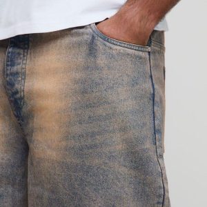 Plus Relaxed Fit Extreme Tinted Stonewash Longline Jorts