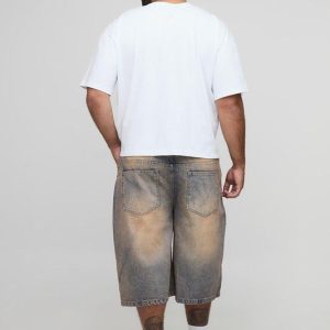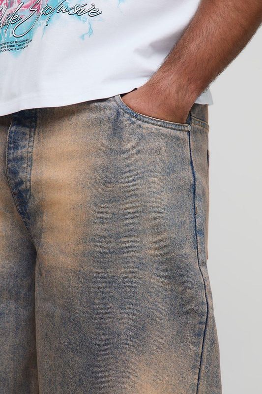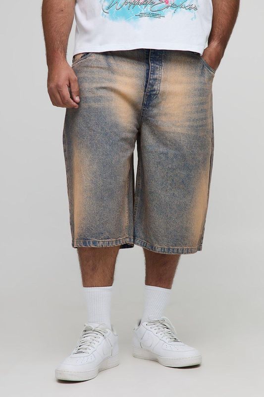 Plus Relaxed Fit Extreme Tinted Stonewash Longline Jorts