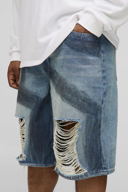 Plus Relaxed Fit Paint Brushed Distressed Jorts