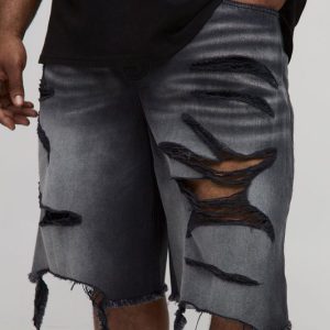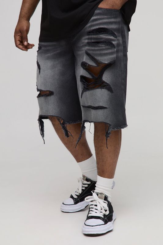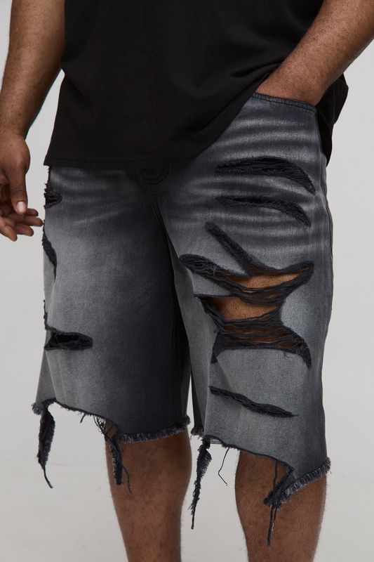 Plus Relaxed Fit Washed Super Distressed Jorts