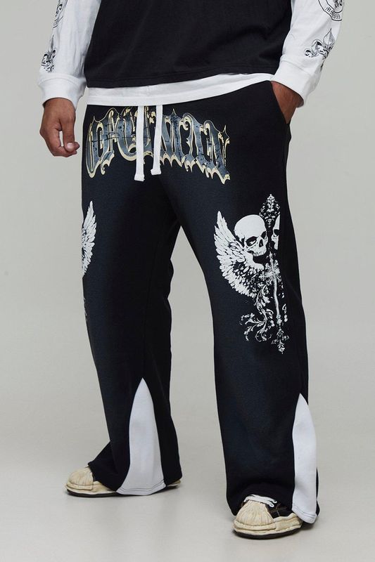 Plus Relaxed Flare Spray Washed Skull Gusset Jogger