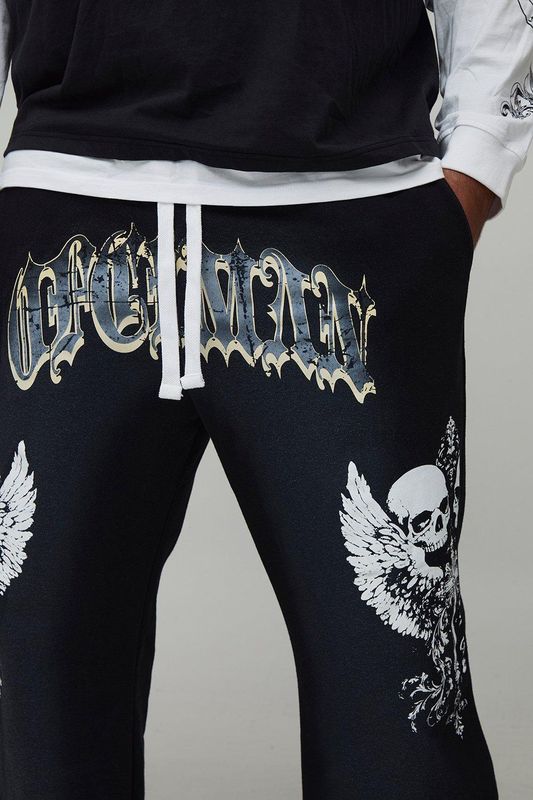 Plus Relaxed Flare Spray Washed Skull Gusset Jogger