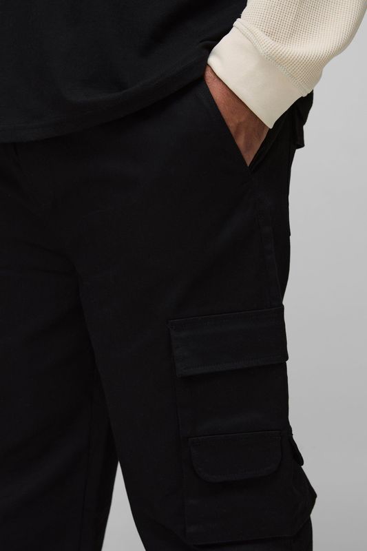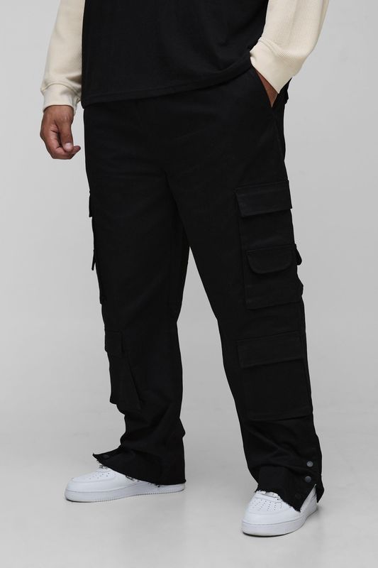 Plus Relaxed Washed Raw Popper Hem Cargo Trousers