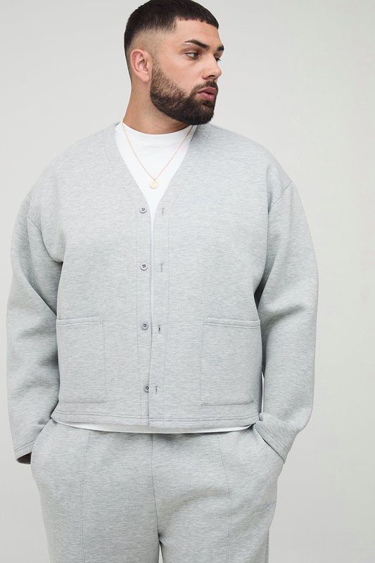 Plus Scuba Marl Embroidered Boxy Oversized Cardigan