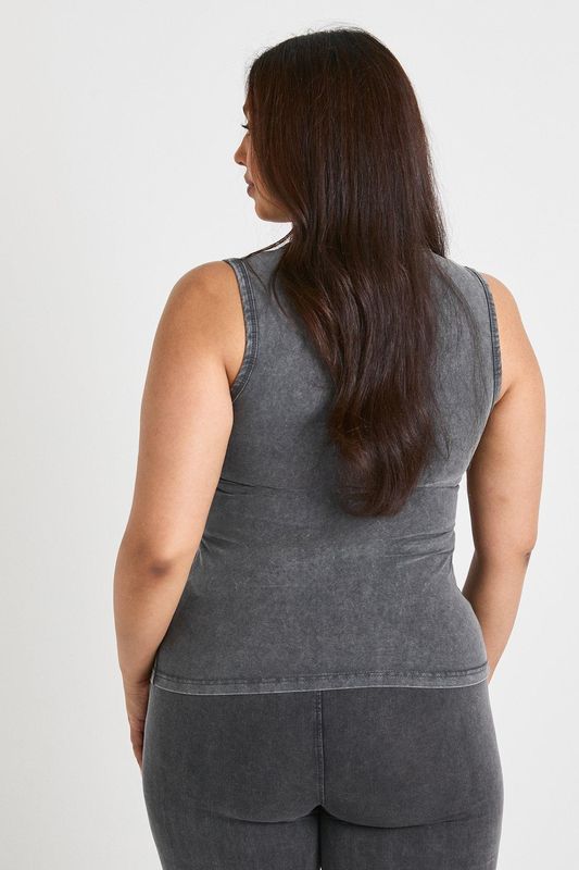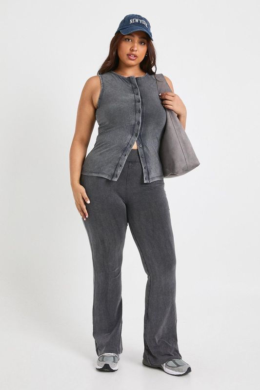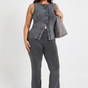 Plus Sleeveless Button Down Acid Wash Top