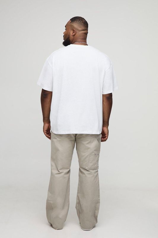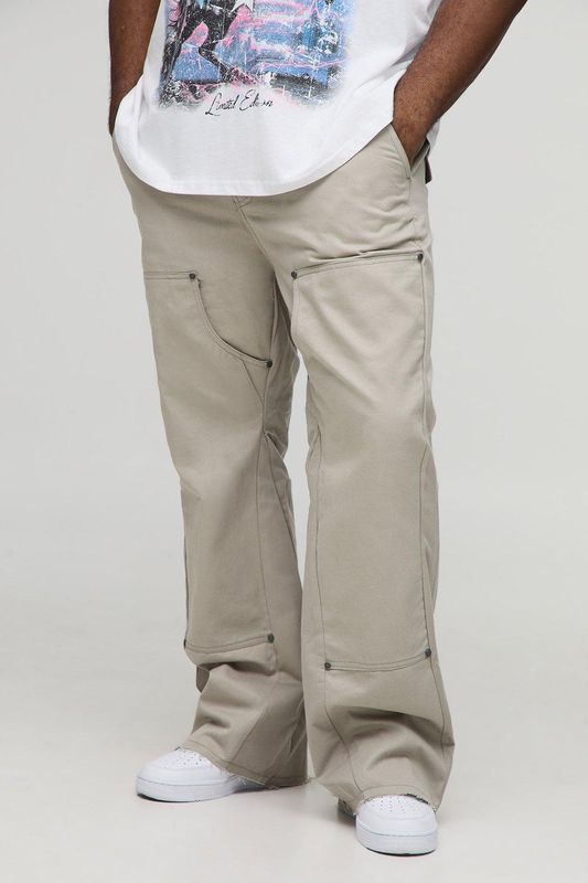 Plus Slim Fit Washed Raw Hem Carpenter Flared Trousers