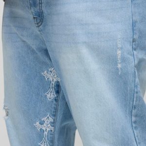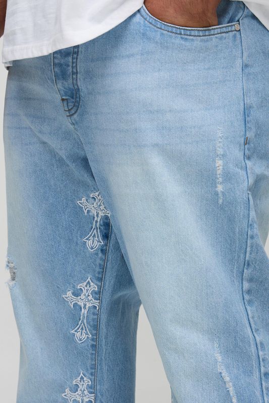 Plus Slim Flared Distressed Cross Gusset Embroidered Jeans