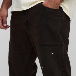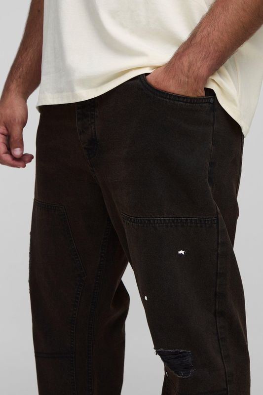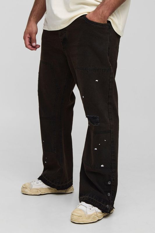Plus Slim Flared Ripped Carpenter Split Hem Jeans