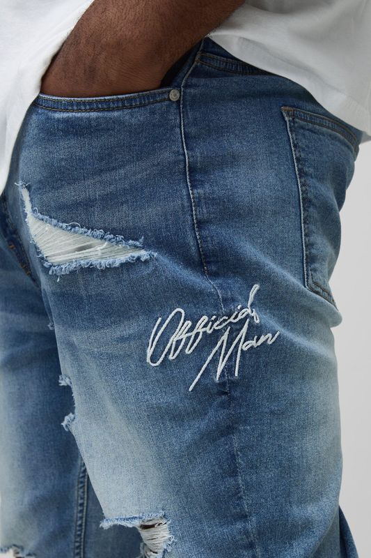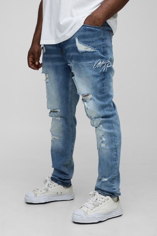 Plus Stacked Skinny Extreme Rip Embroidered Jeans