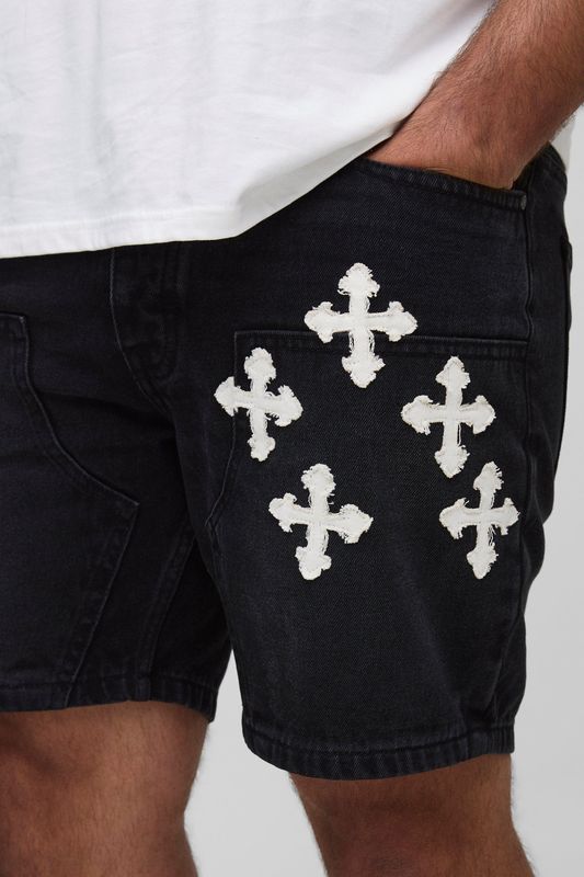 Plus Straight Fit Cross Applique Carpenter Jean Shorts