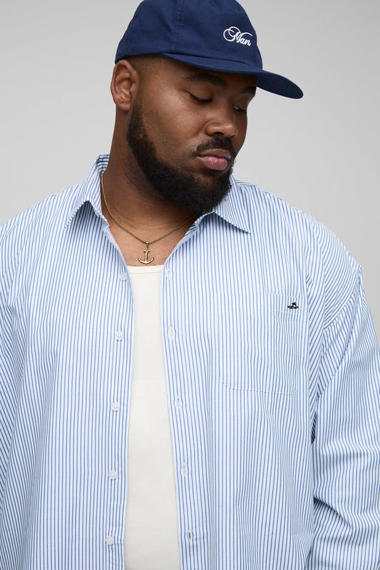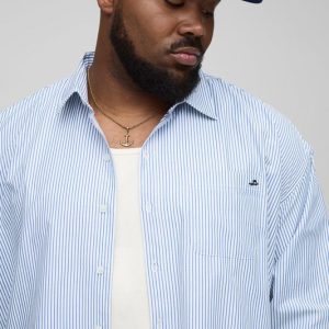 Plus Stripe Oversized Long Sleeve Embroidered Shirt