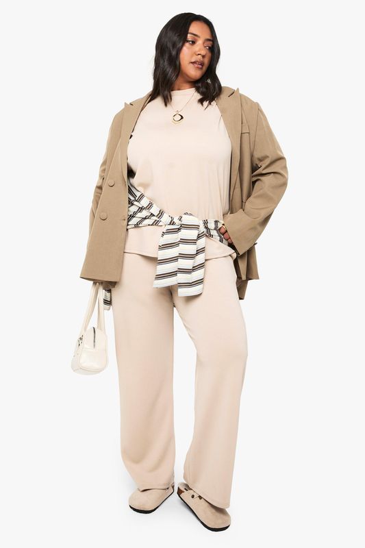 Plus Super Soft Wide Leg Elasticated Waist Trouser