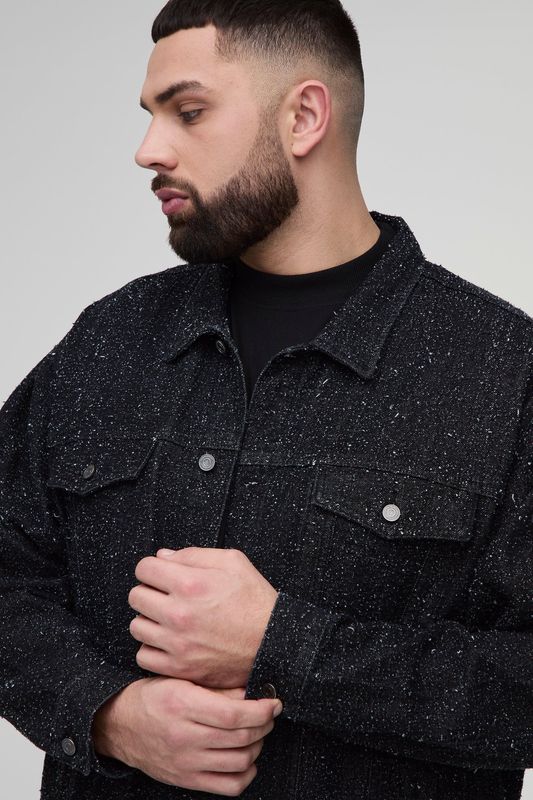 Plus Textured Denim Boxy Oversized Jacket