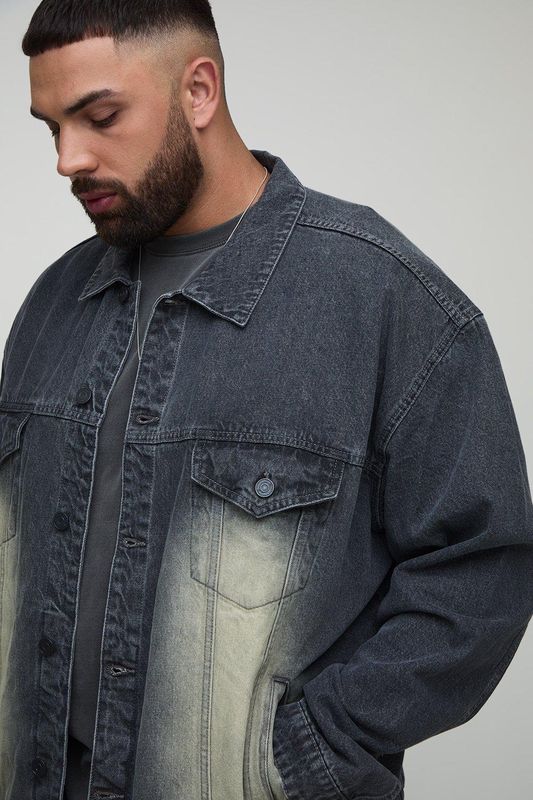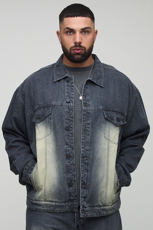 Plus Tinted Washed Boxy Oversized Denim Jacket