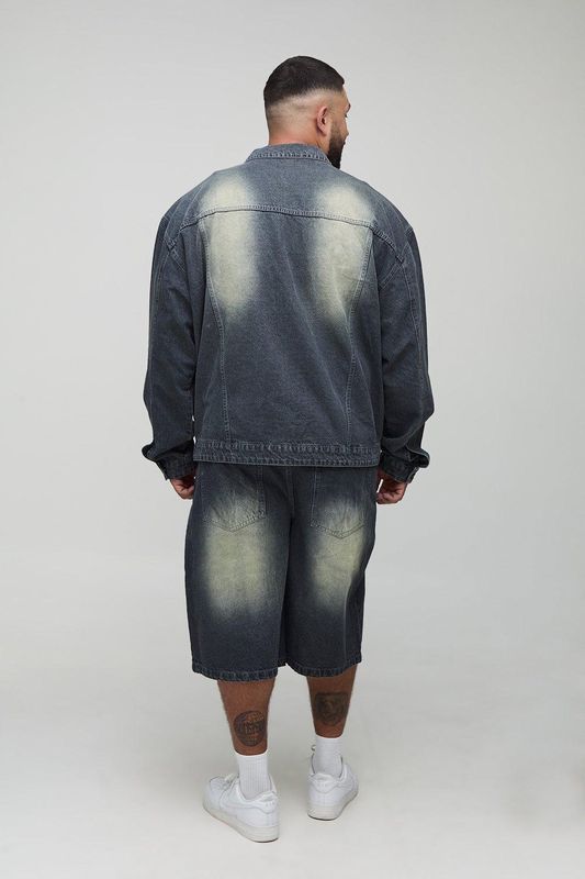 Plus Tinted Washed Boxy Oversized Denim Jacket