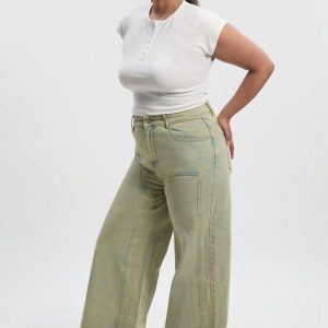 Plus Vintage Wash Distressed Straight Leg Jeans