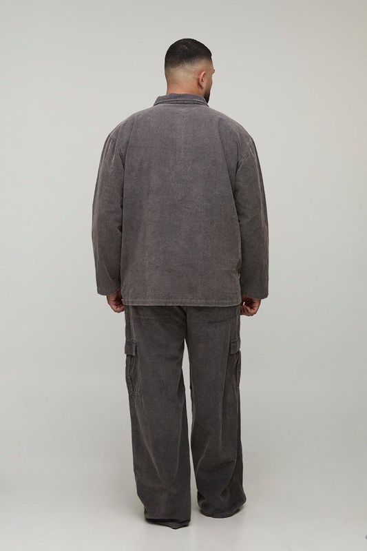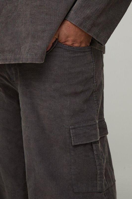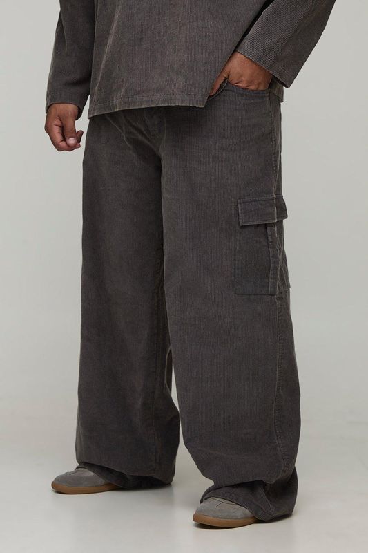 Plus Washed Cord Baggy Fit Cargo Trousers