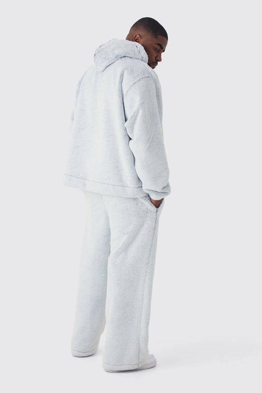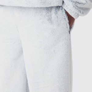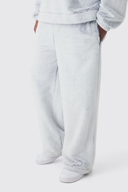 Plus Wide Leg Fluffy Two Tone Sweatpants