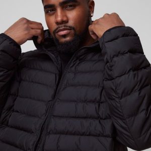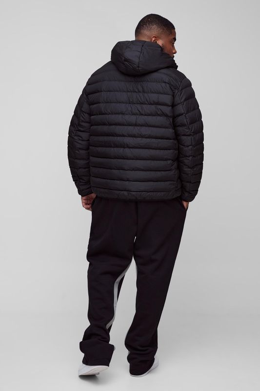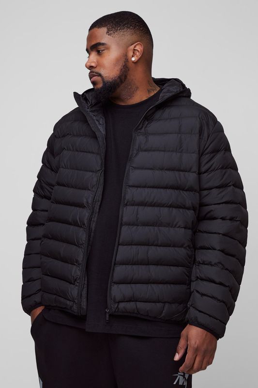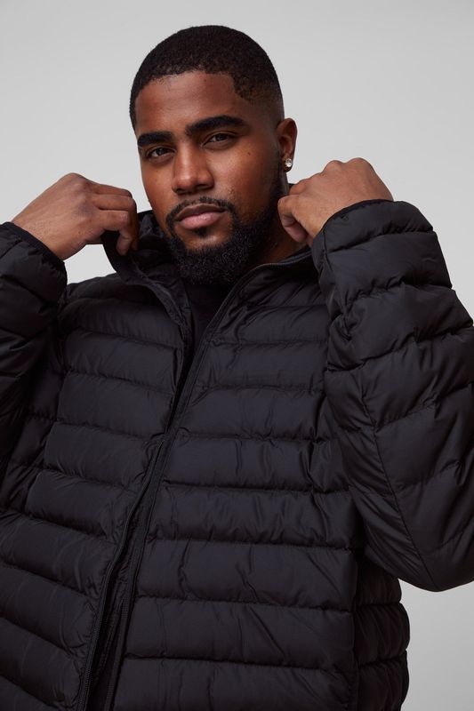 Plus Zip Through Regular Fit Hooded Puffer Jacket In Black