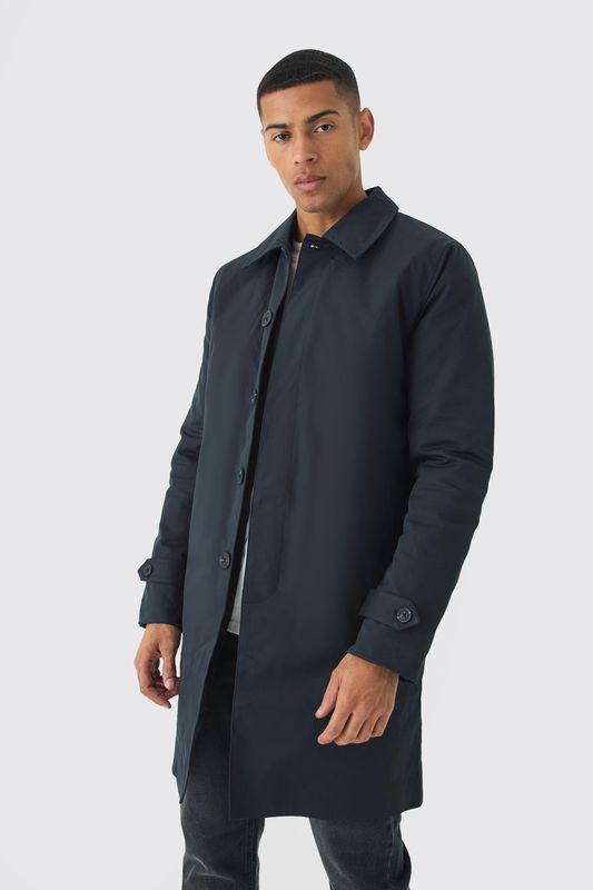 Quilted Padded Longline Raincoat Jacket In Black