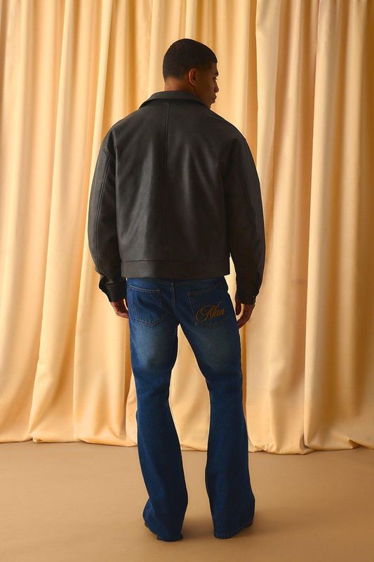 Regular Fit Antique PU Zip Up Harrington Jacket