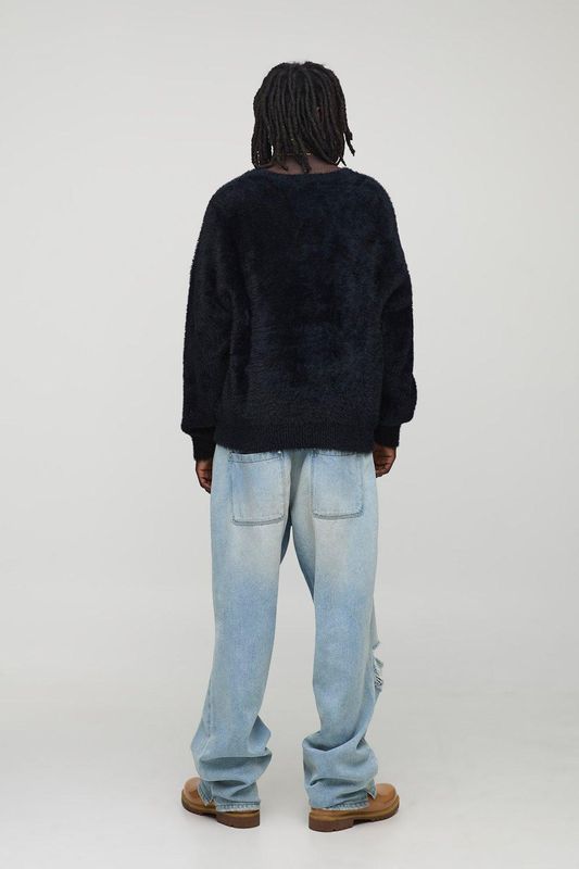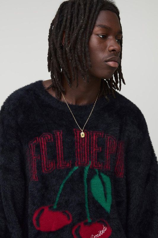 Regular Fit Cherry Graphic Extreme Fluffy Knitted Jumper