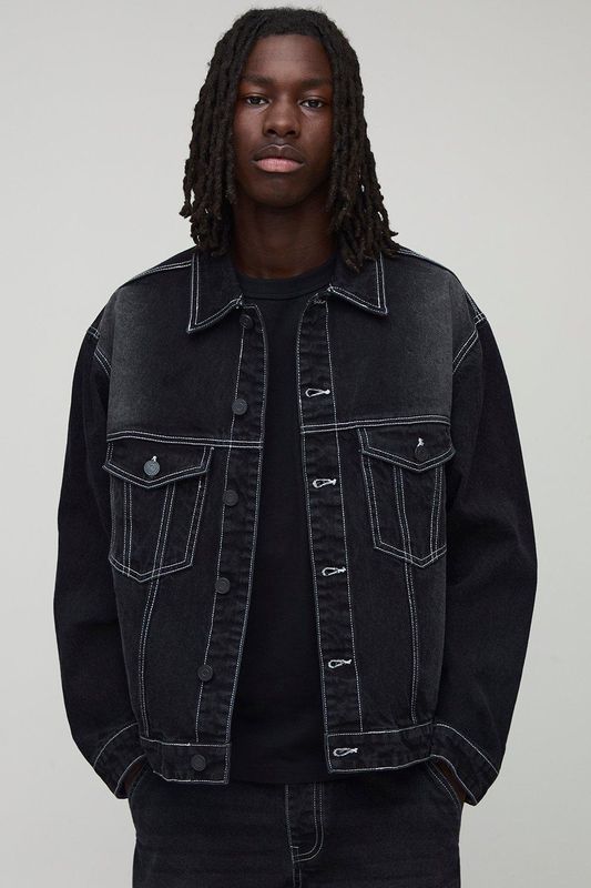 Regular Fit Contrast Stitch Washed Denim Jacket