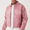Regular Fit Cord Applique PU Sleeve Varsity Jacket