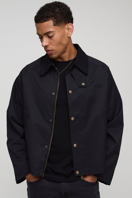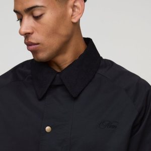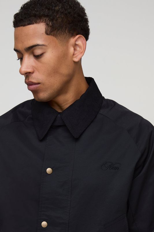 Regular Fit Cord Collar Embroidered Worker Jacket