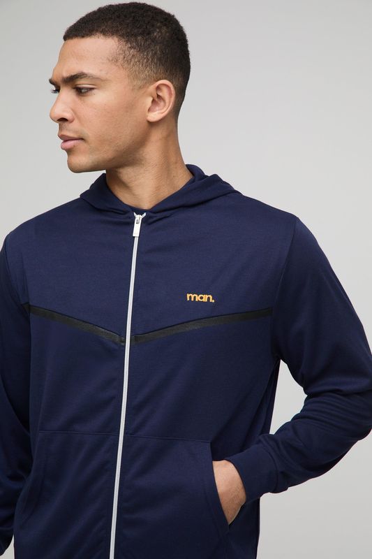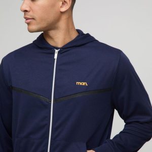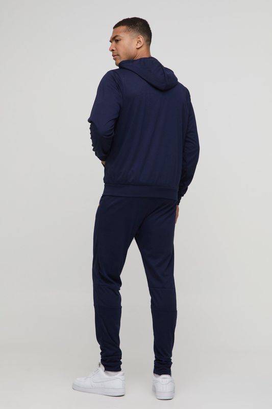Regular Fit Man Interlock Panelled Hooded Zip Through Tracksuit