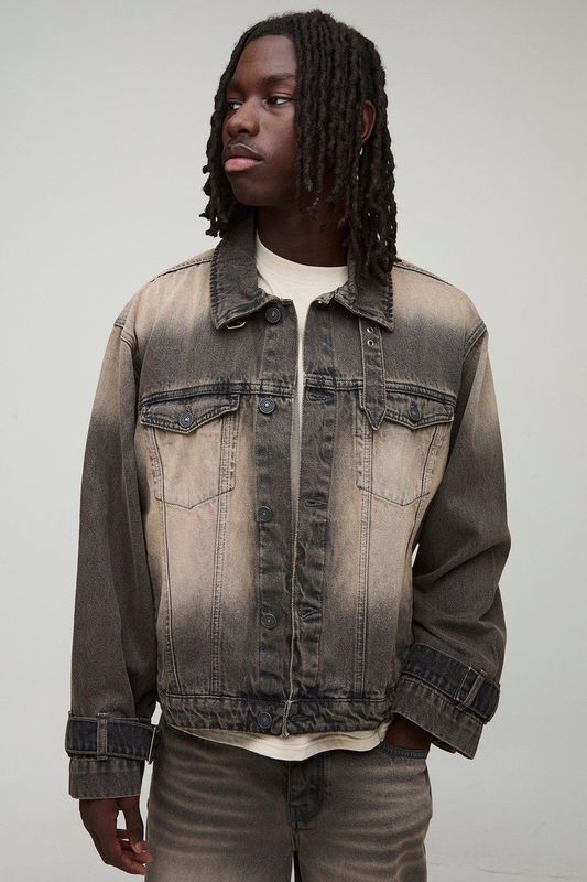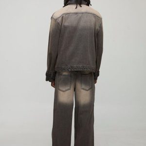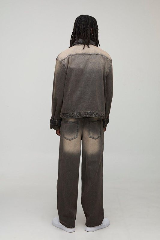 Regular Fit Washed Funnel Neck Denim Jacket