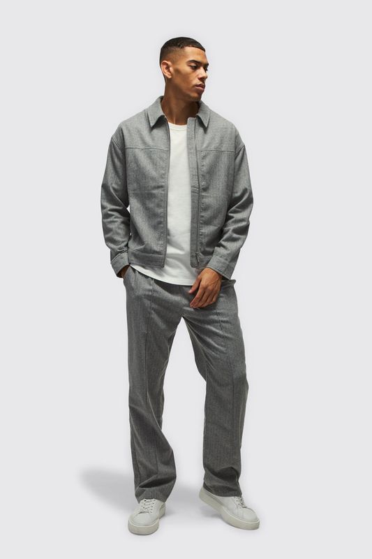 Regular Pinstripe Shirt Jacket & Tapered Fit Pants Set