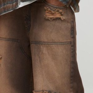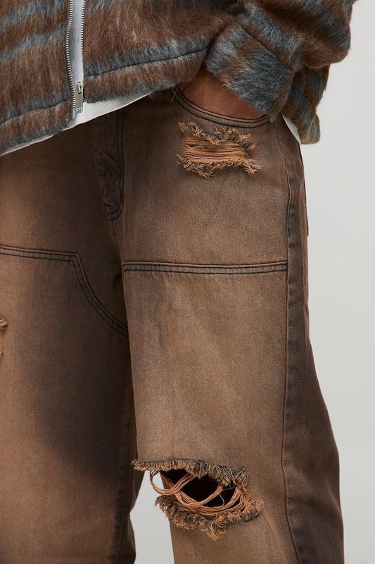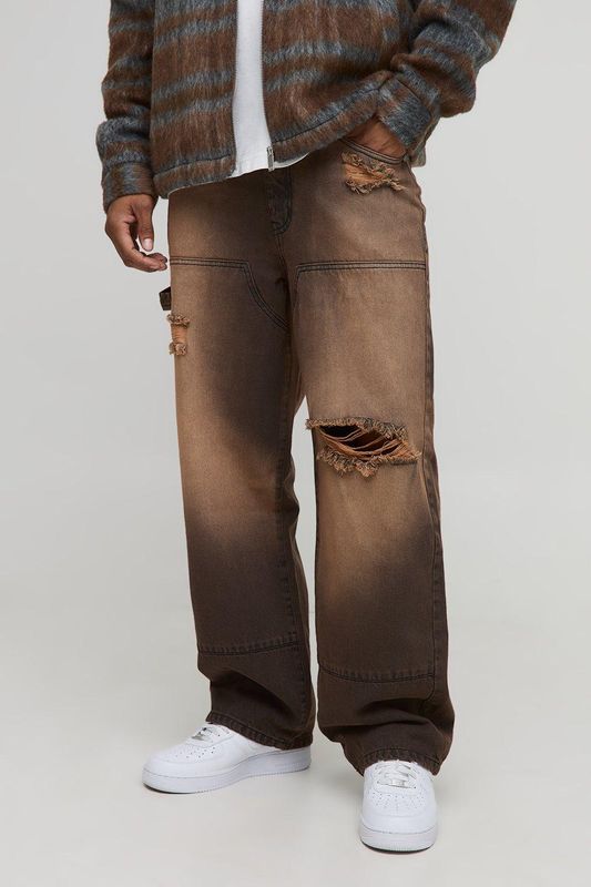Relaxed Fit Acid Wash Ripped Carpenter Jeans